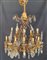 Lampadario a diciotto luci con struttura in bronzo dorato decorato a pendenti i