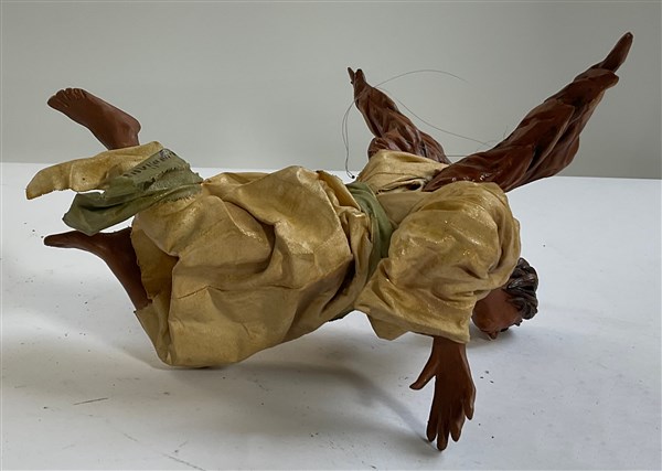 "Angelo" figura da presepe in terracotta e cartapesta, firmata (h. cm 27) (difetti)