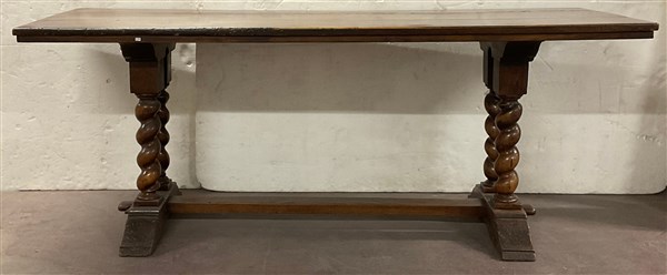 Tavolo refettorio in noce con sostegni a tortiglione e piedi a mensola (cm 200x