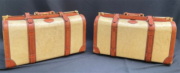 Lot comprising two parchment travelbags with leather borders (cm 60x30x33) (defects, wear)