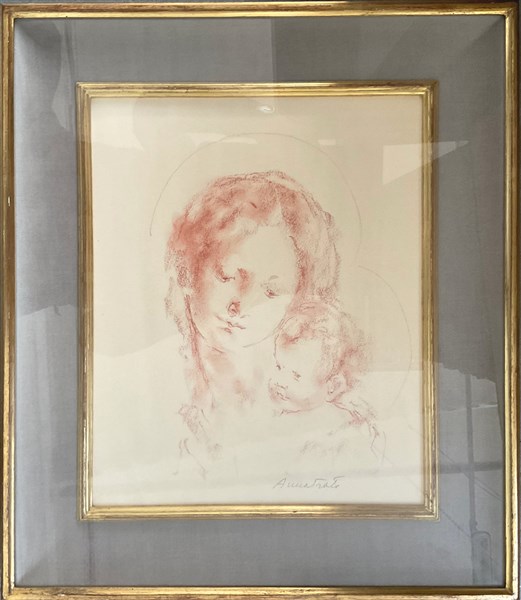 Anna Prati "Madonna con Bambino" matita rossa su carta (mm 350x280). Firmato in