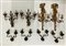Lotto di otto applique a due luci in ferro e legno di fatture ed epoche differenti (h max cm 48) (difetti e mancanze)