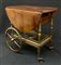 Carrello portavivande con struttura in ottone, piano in legno lastronato a due