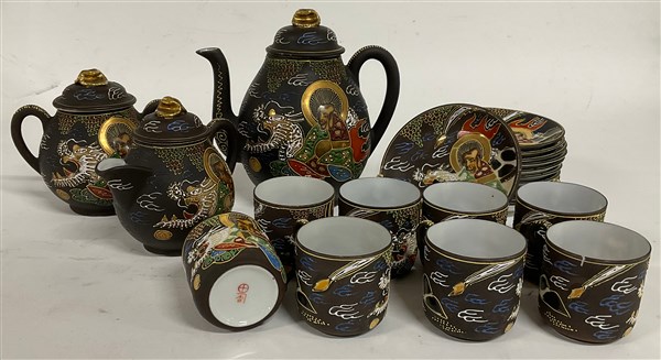 Manifattura di Satsuma, parte di servizio da tè in porcellana dipinta in policr
