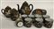 Manifattura di Satsuma, parte di servizio da tè in porcellana dipinta in policromia con applicazioni in foglia d'oro, composto da otto tazzine con piattini, teiera, lattiera e zuccheriera. Giappone, sec. XX (lievi difetti) (lievi difetti)
