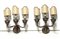 Coppia di antiche appliques a tre luci in ferro e legno intagliato e dorato (cm