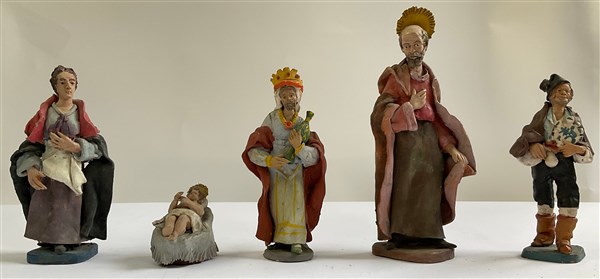 Manifattura di Bonaccorso, Caltagirone. Gruppo di cinque figure da presepe in t