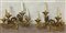 Coppia di appliques a quattro fiamme in metallo dorato, decorate a volute a mot