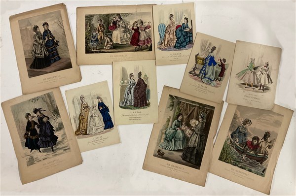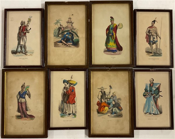 Lotto di diciotto stampe inerenti moda e costumi dal mondo (otto in cornici) (difetti)