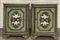 Coppia di antiche angoliere in legno laccato verde con sportello centrato da vo