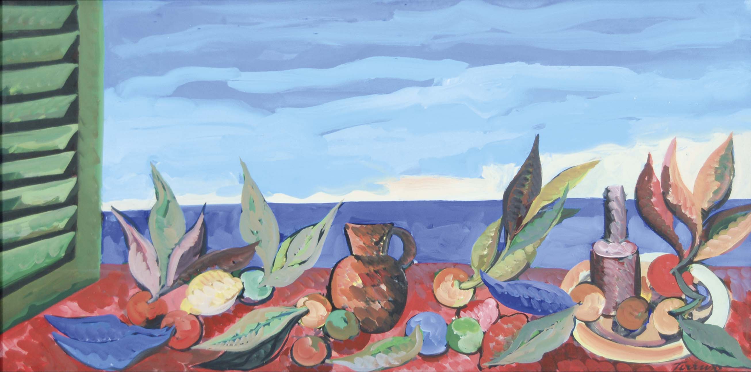 TERRUSO SAVERIO Monreale 1939 Natura morta acrilici su tela cm 50x100 firma in basso a destra firma e titolo al retro autentica dell'Autore su foto e al retro