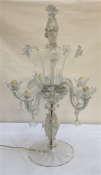 Lot 2222 | Manifattura di Murano, lampada da tavolo a cinque fiamme in vetro trasparente