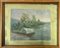 Lotto di due dipinti ad olio raffiguranti "Paesaggio con cascina" e "Scorcio fluviale" autori e misure diverse; unodei due firmato. In cornici (difetti)
