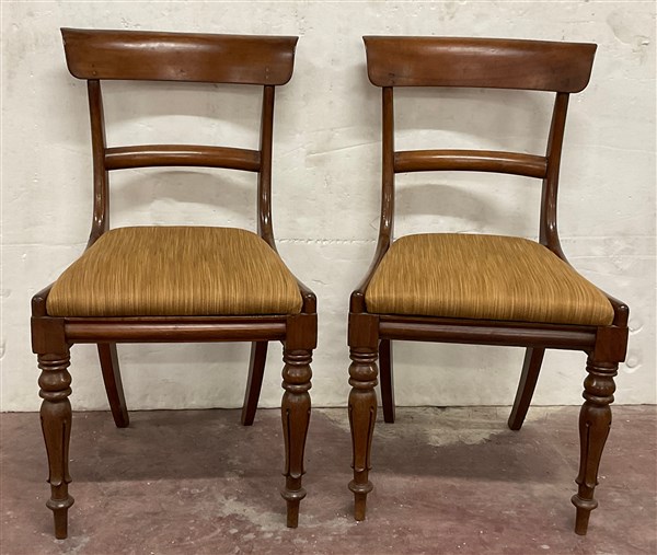Coppia di sedie con schienale a giorno con gambe anteriori tornite e posteriori