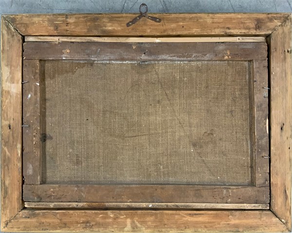 Ignoto "Paesaggio costiero al chiaro di luna" tecnica mista su cartoncino applicato su tela (cm 25,5x39,5) In cornice (difetti e restauri)