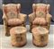 Lotto composto da una coppia di bergères e due pouf tondi, rivestimenti in tess