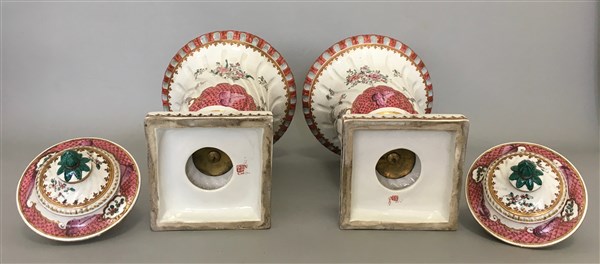 Manifattura Samson, coppia di vasi a urna con coperchi in porcellana policroma