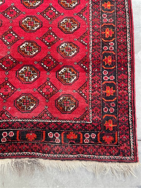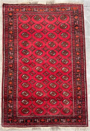 Tappeto Kizyl-Ayak, Turkestan occidentale, inizio secolo XX. Decoro con Gul su fondo rosso (cm 175x112) (lievi difetti)