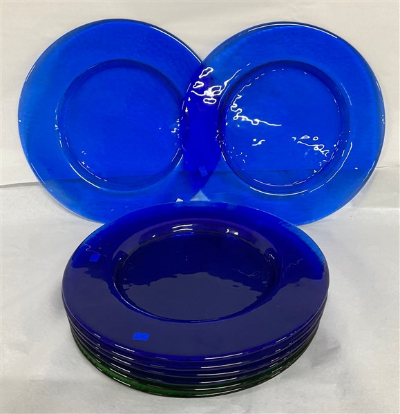 Lotto composto da sei sottopiatti in vetro blu e due in vetro verde (d cm 32) (