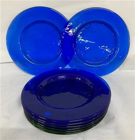 Lotto composto da sei sottopiatti in vetro blu e due in vetro verde (d cm 32) (lievi difetti)