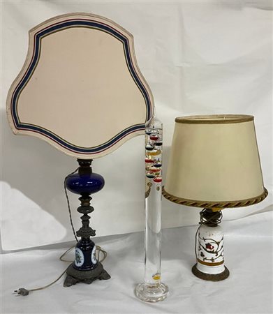 Lotto composto da due lampade da tavolo in ceramica e metallo, e un termometro ad acqua (difetti)