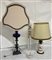 Lotto composto da due lampade da tavolo in ceramica e metallo, e un termometro