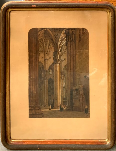 "Interno del Duomo" acquerello (cm 57x40) Firmato in basso a destra. In cornice