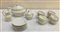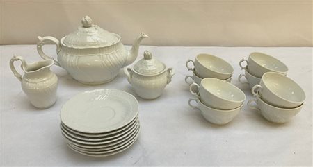 Manifattura Ginori, parte di servizio in porcellana bianca composto da otto tazze con piattini, teiera, zuccheriera e lattiera (difetti)