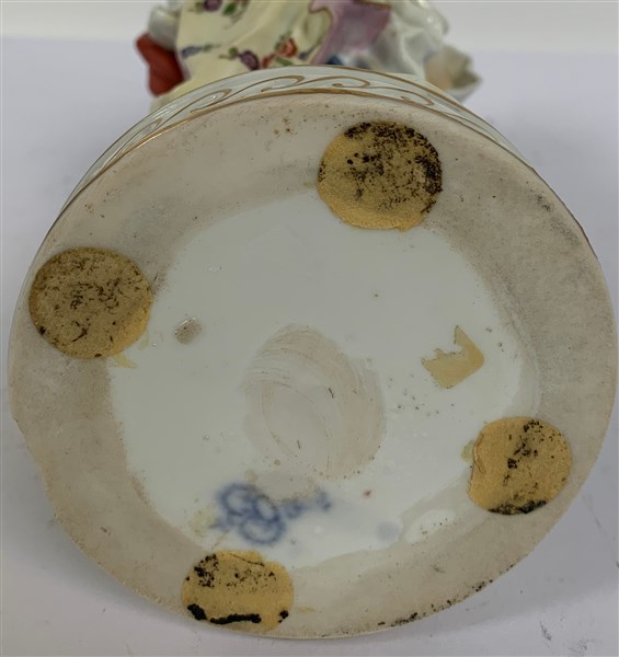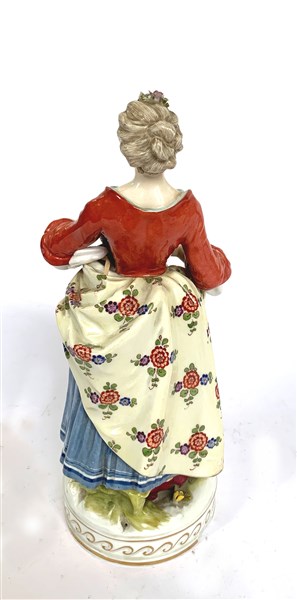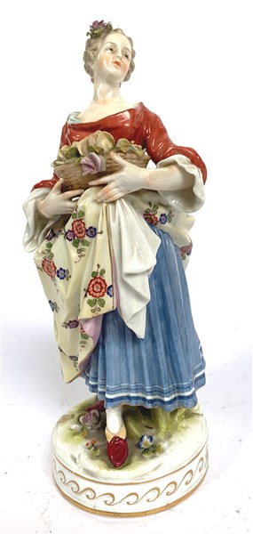 Manifattura di Dresda "Figura femminile con cesto di fiori" porcellana policrom