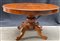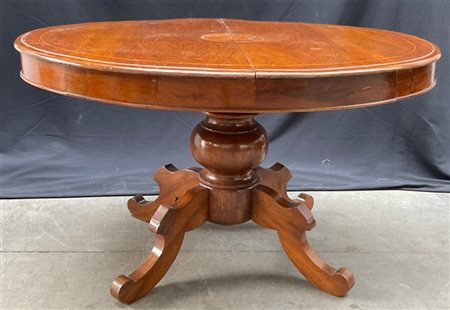 Tavolo allungabile con piano ovale filettato, gamba centrale tornita a balaustro, piedi a sagoma. Secolo XIX (cm 131x78x105) (difetti)