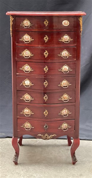 Cassettiera a otto cassetti con fronte mosso, guarnizioni in metallo, decorato