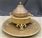 Braciere in ottone su base circolare con sostegni a volute e fasce scanalate (d cm 85, h cm 57) (difetti)