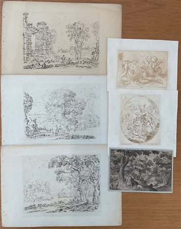 Lotto composto da tre incisioni di Richard Earlom (mm 205x255 circa all'impronta), due da invenzioni di A. D. Gabbiani (mm 170x135 e mm 130x172 circa) e una di Nicolas de Bruyn (mm 135x205)