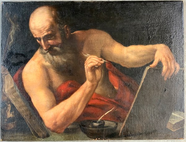 Scuola del secolo XVII "San Girolamo" olio su tela (cm 72x94,5)