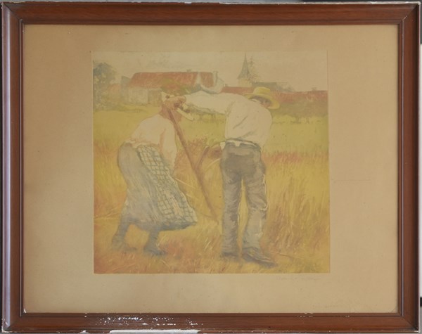 Manuel Robbe "Contadini" acquatinta a colori (lastra cm 49x63; foglio cm 38x40)