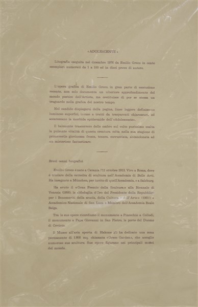 Emilio Greco "Adolescente" litografia cm 70x50 firmata datata e numerata 1/100.