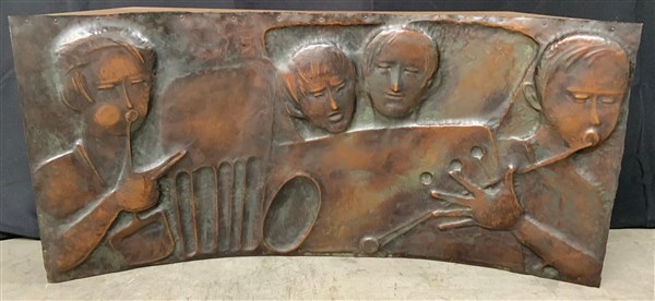 Eli Riva "Musicisti", bassorilievo su lamina di rame montato su pannello in legn