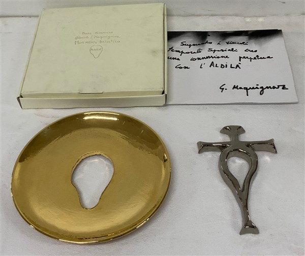 Gabriele Maquignaz Lotto composto da un piatto ed un crocifisso in ceramica smal