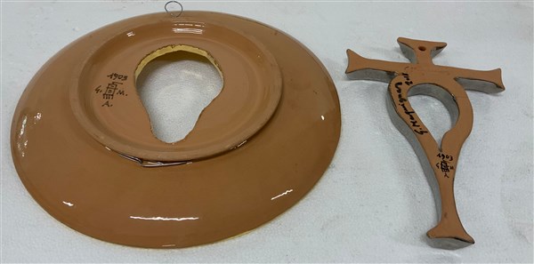 Lotto composto da un piatto ed un crocifisso in ceramica smaltata e dipinta