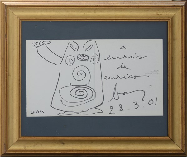 Enrico Baj "Dedica" 2001 pennarello su libro "Enrico Baj. Gli anni del collage"