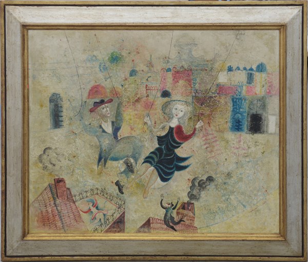 Losi Cinello "L'altalena" encausto su tavola cm 74x91,5 firmato e titolato in b