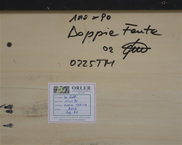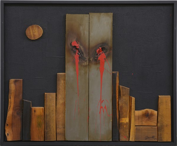 Pierluigi De Lutti "Doppia ferita" 2002 tecnica mista e assemblage su tavola cm
