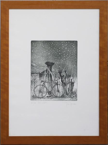 Tino Aime "Bici e salici" acquaforte (lastra cm 32x24,5; foglio cm 70x50) firma