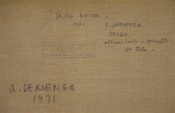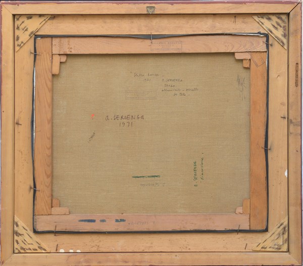 Angelo Serlanga "Sulla barca" 1971 tecnica mista su tela cm 50x60 firmato, datat