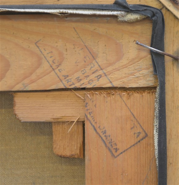 firmato, datato e titolato al retro; timbro della Galleria Bagutta, Milano. In cornice (lievi difetti)