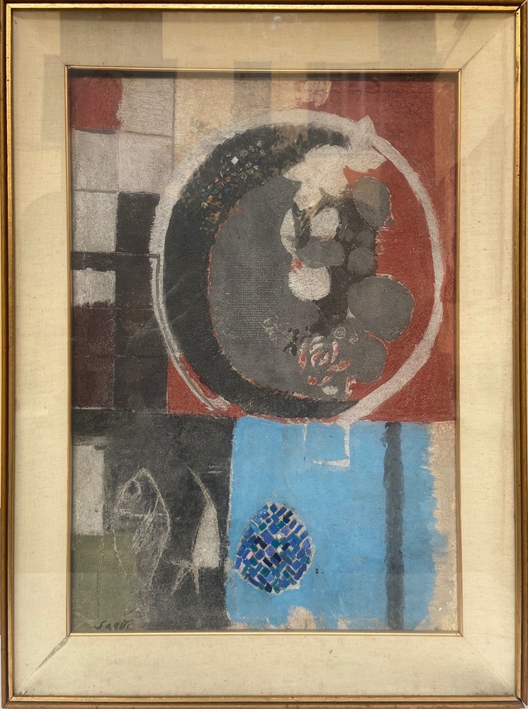 Bruno Saetti "Composizione" 1964 affresco e mosaico su tela cm 70x50 Firmato in