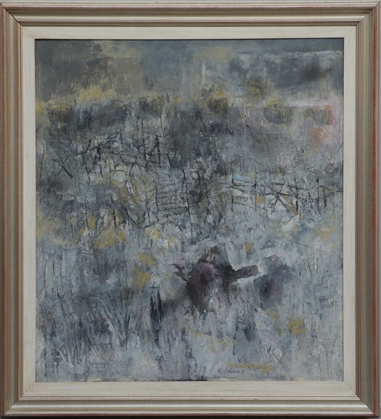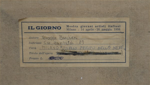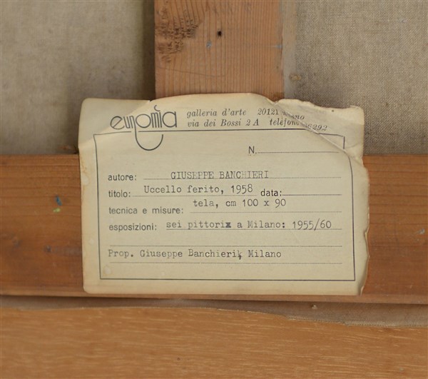 Giuseppe Banchieri "Uccello ferito" 1958 olio su tela cm 100x90 firmato e datato