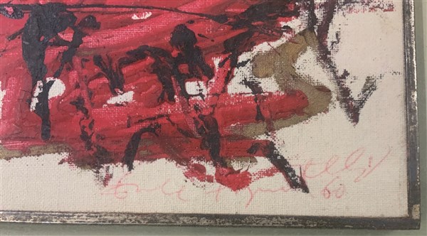 Ercole Pignatelli "Senza titolo" 1960 olio su tela cm 13x49 firmato e datato in