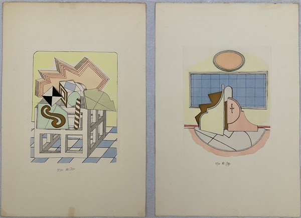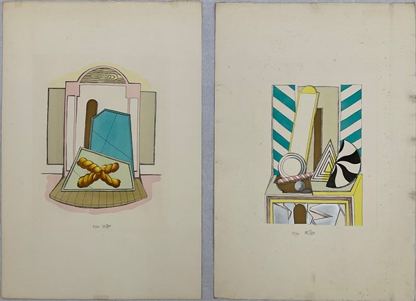 Lot 2996 | Lucio Del Pezzo Lotto composto da quattro incisioni acquerellate fogli cm 57x39