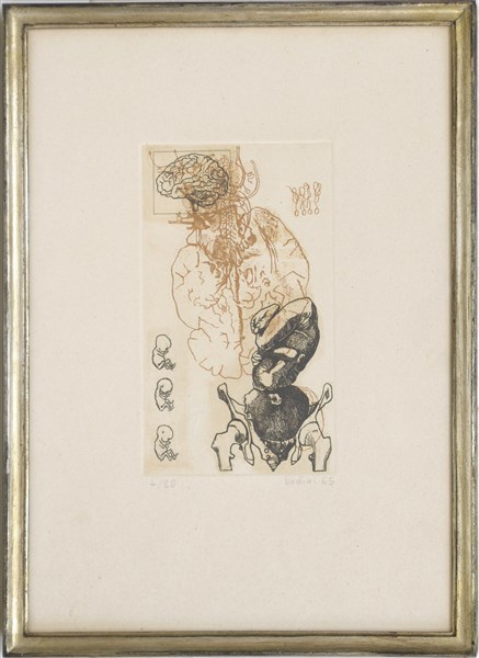Floriano Bodini "Senza titolo" 1965 acquaforte acquatinta a colori (lastra cm 26